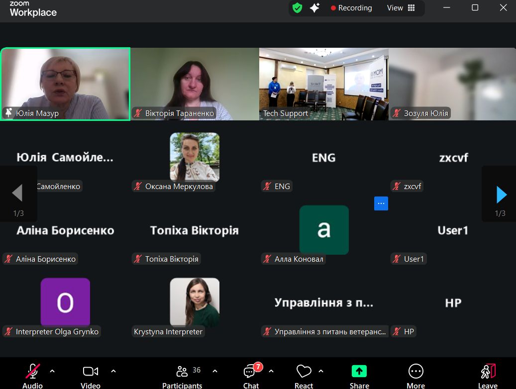 24 лютого завідувачка кафедри соціального забезпечення та податкової політики, координаторка Центру ветеранського розвитку УМСФ Вікторія ТАРАНЕНКО взяла участь у зустрічі Тематичної Робочої Групи з психологічного здоров’я та психо-соціальної підтримки ветеранів, під назвою «Система комплексної підтримки ветеранів у Черкаській області: інституції, послуги та спільноти». Тематичну робочу групу з ПЗПСП для ветеранів (ТРГВ) створено як підгрупу Технічної робочої групи з ПЗПСП України, співголовами якої є Координаційний центр з психічного здоров’я при Кабінеті міністрів України та Міжнародна організація з міграції (МОМ).