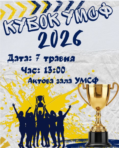 Запрошуємо на яскраву подію — Кубок УМСФ 2026 , який відбудеться 7 травня о 13:00 в актовій залі Університету митної справи та фінансів. Це унікальна можливість побачити, як факультети змагаються між собою у творчості, креативності та командному дусі, даруючи глядачам незабутні емоції та атмосферу справжнього студентського свята. На вас чекають захопливі виступи, драйвова підтримка команд і, звичайно, визначення переможця, який отримає головний трофей — Кубок УМСФ.