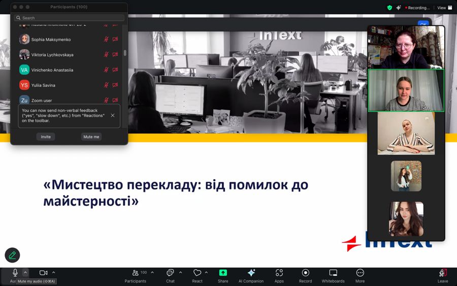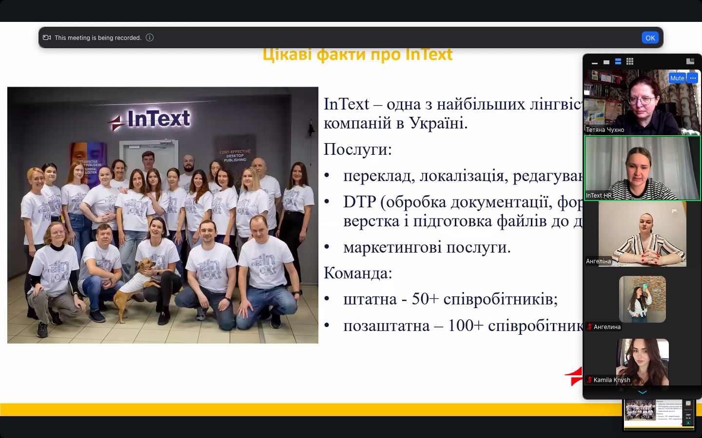 У межах партнерства з нашим стейкґолдером – лінгвістичною компанією InText – 8 жовтня студенти-філологи мали унікальну нагоду долучитися до лекції «Мистецтво перекладу: від помилок до майстерності».