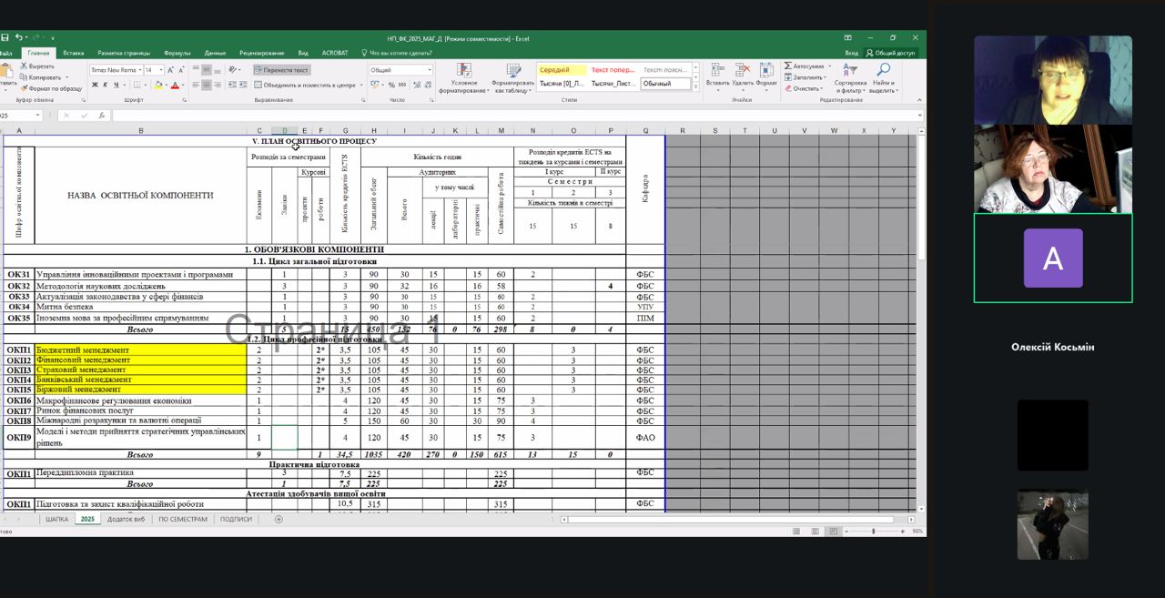 Гаранти, здобувачі освіти, викладачі кафедри обговорили структуру і компоненти освітньо-професійних програм, напрямки спеціальності та перспективи працевлаштування, порядок формування індивідуальних освітніх траєкторій та процедуру вибору освітніх компонент. Презентовано інформацію щодо освітнього процесу, яку розміщено на сайті Університету митної справи та фінансів.