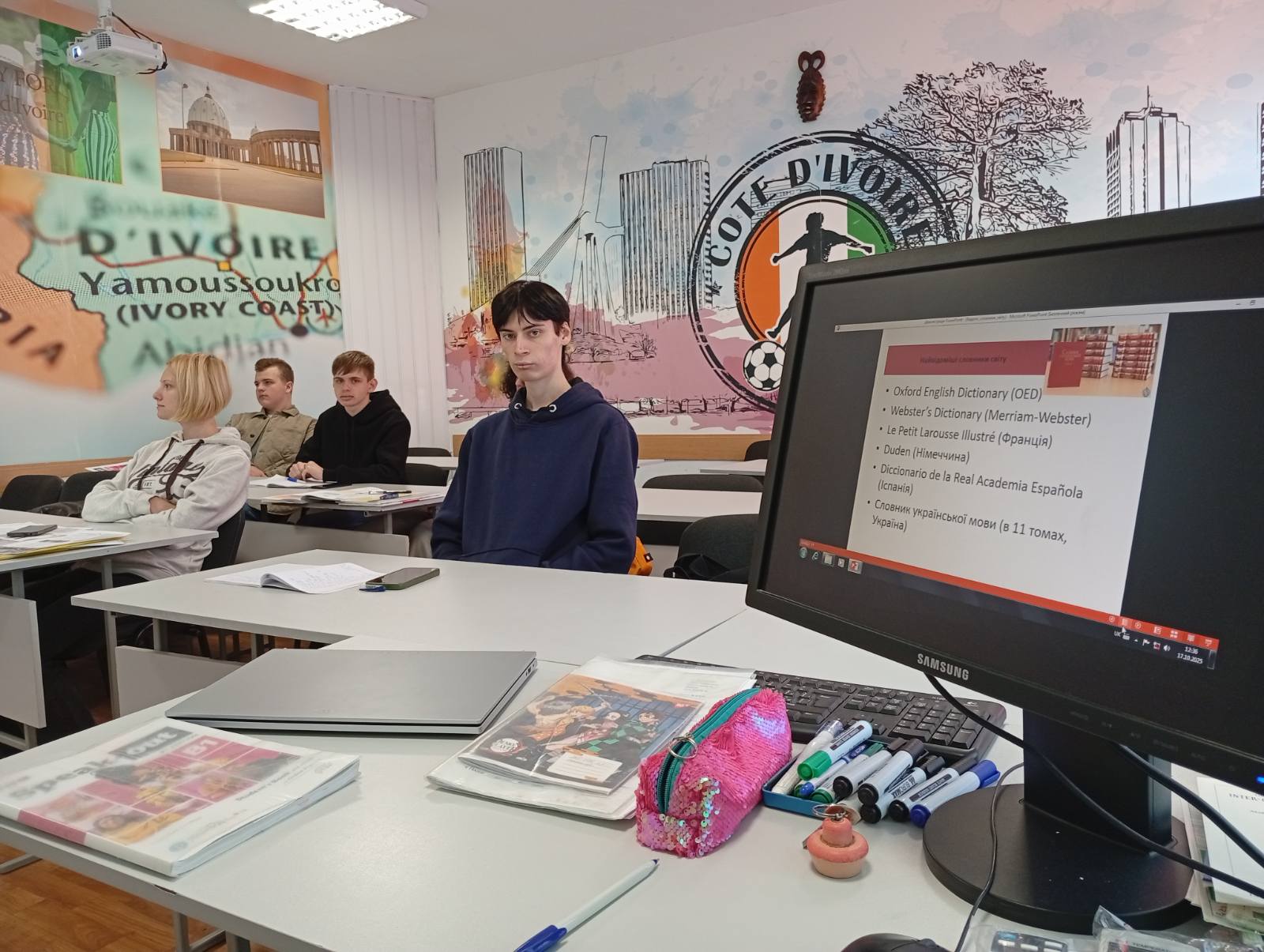 У межах зустрічі учасники прослухали змістовну презентацію, присвячену історії створення словників, їх ролі у розвитку мовознавства та сучасним цифровим лексикографічним ресурсам.