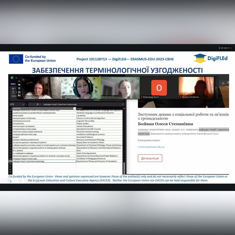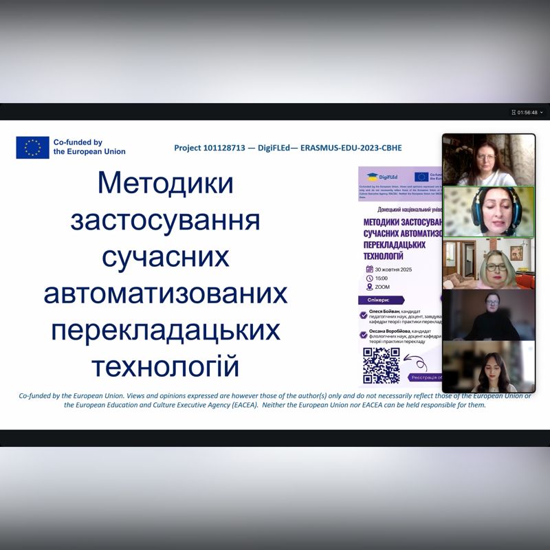 30 жовтня 2025 року доцент кафедри Чухно Тетяна Володимирівна взяла участь у вебінарі, організованому Донецьким національним університетом імені Василя Стуса в межах освітнього проєкту Erasmus+ DigiFLEd.