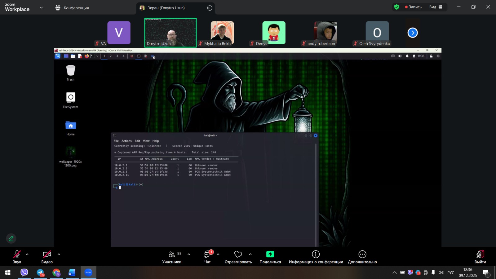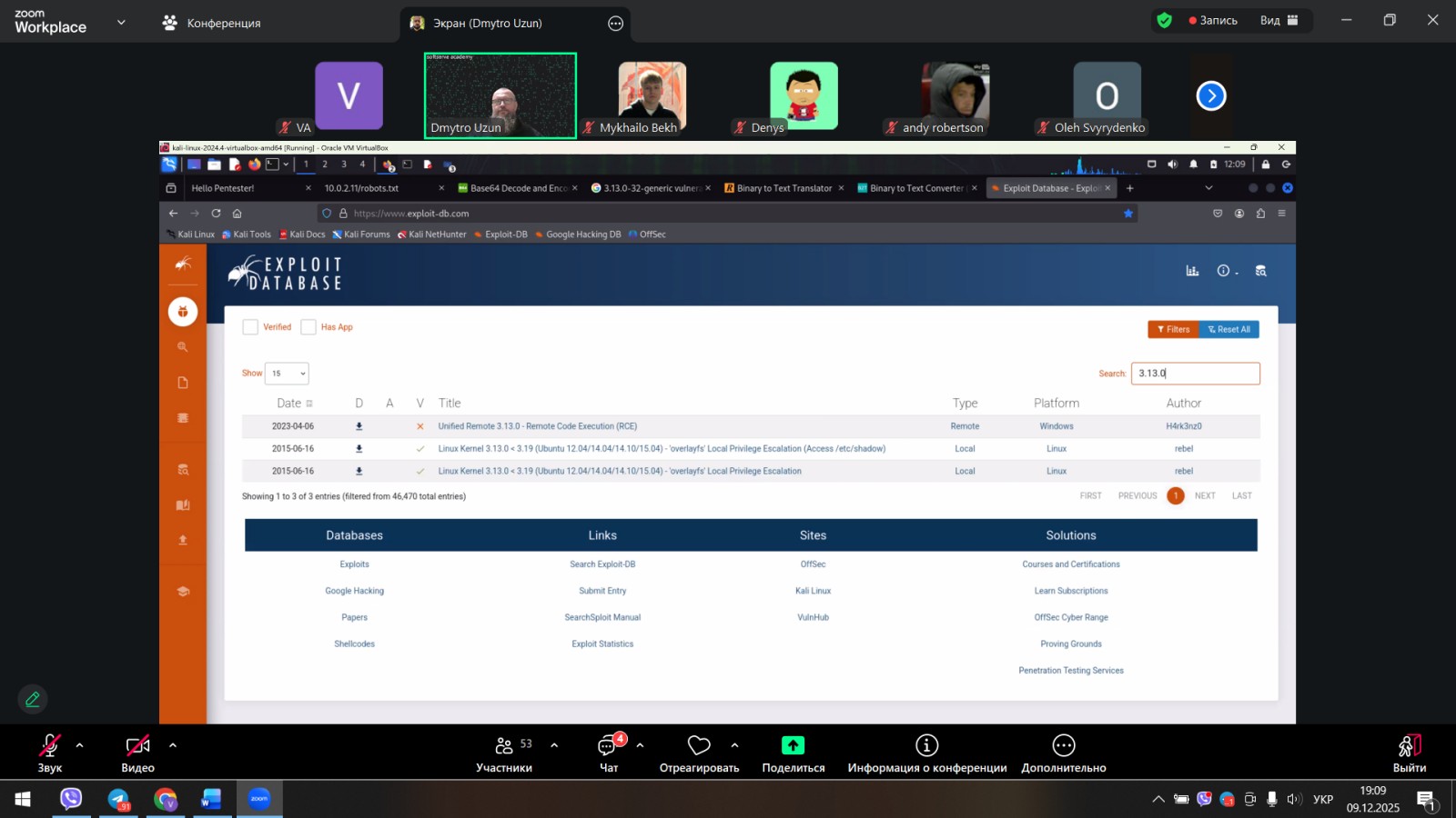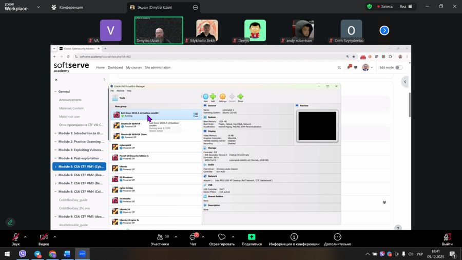 Зустріч була присвячена використанню сучасних інформаційних технологій та  програмуванню у кібербезпеці —про інструменти, системний підхід та уважність. Адже правило «не натискати на підозріле посилання» теж ніхто не скасовував. На нашій live coding-сесії студенти побачили, як захист працює зсередини. Було детально досліджено: як створюються віртуальні оточення для дослідження вразливостей, як обрати дистрибутиви для досліджень,  де знайти безплатні ресурси для CTF,  як підготувати гайд із проходження обраної CTF VM, як пов’язати знайдені вразливості зі стандартами OWASP та MITRE ATT&CK.