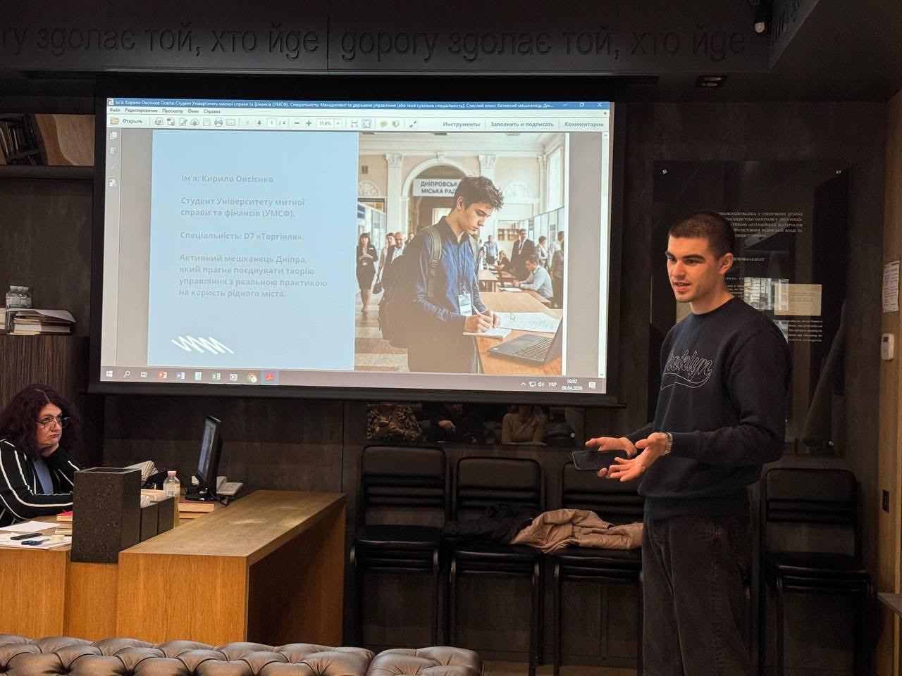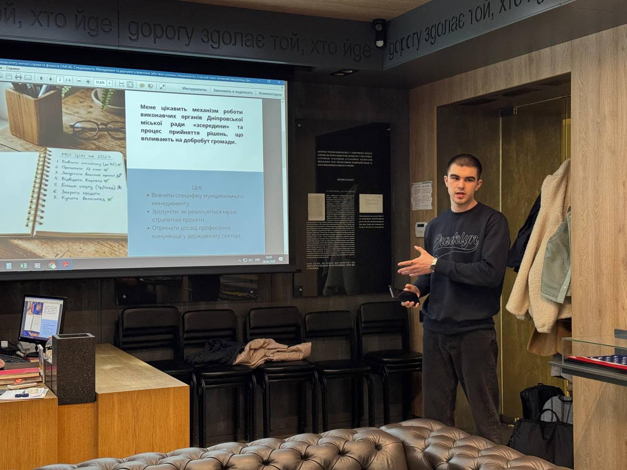 Пройшов відбір і проходить стажування в Дніпровській міській раді, де аналізує ефективність муніципальних проектів та вивчає структуру міського управління. Цей досвід допомагає здобувачу трансформувати теоретичні знання та навички з університету в реальні можливості, необхідні для майбутньої кар’єри у державному секторі.