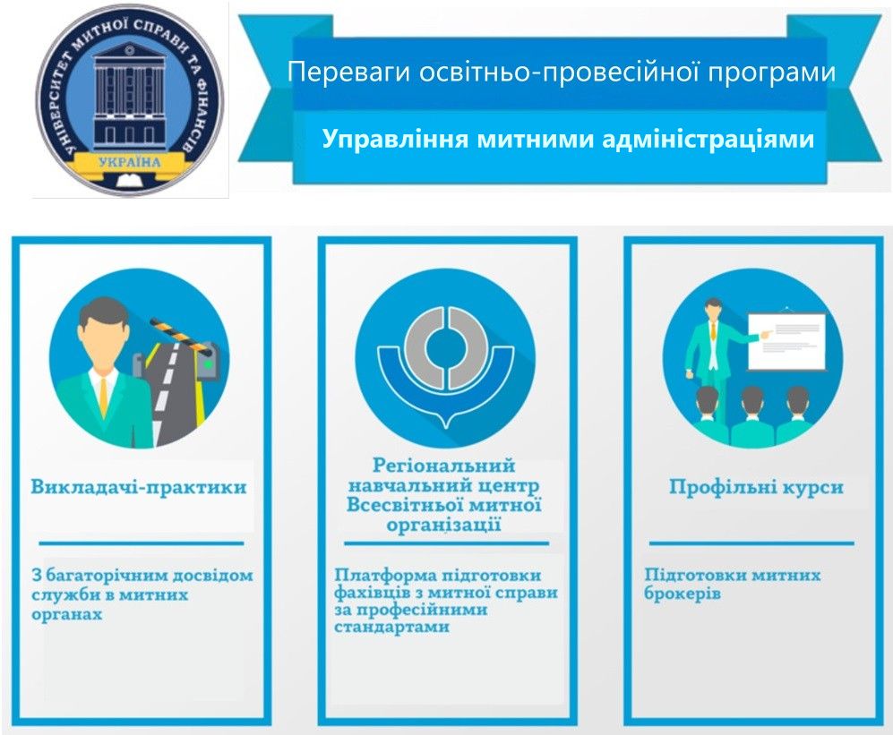 Переваги освітньої програми: після завершення навчання фахівці набувають знань щодо здійснення митної справи та зовнішньоекономічної діяльності, а також щодо виконання організаційно-розпорядчих функцій як у публічний сфері, так і у бізнес-структурах.